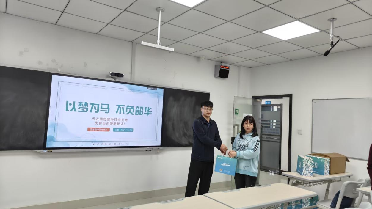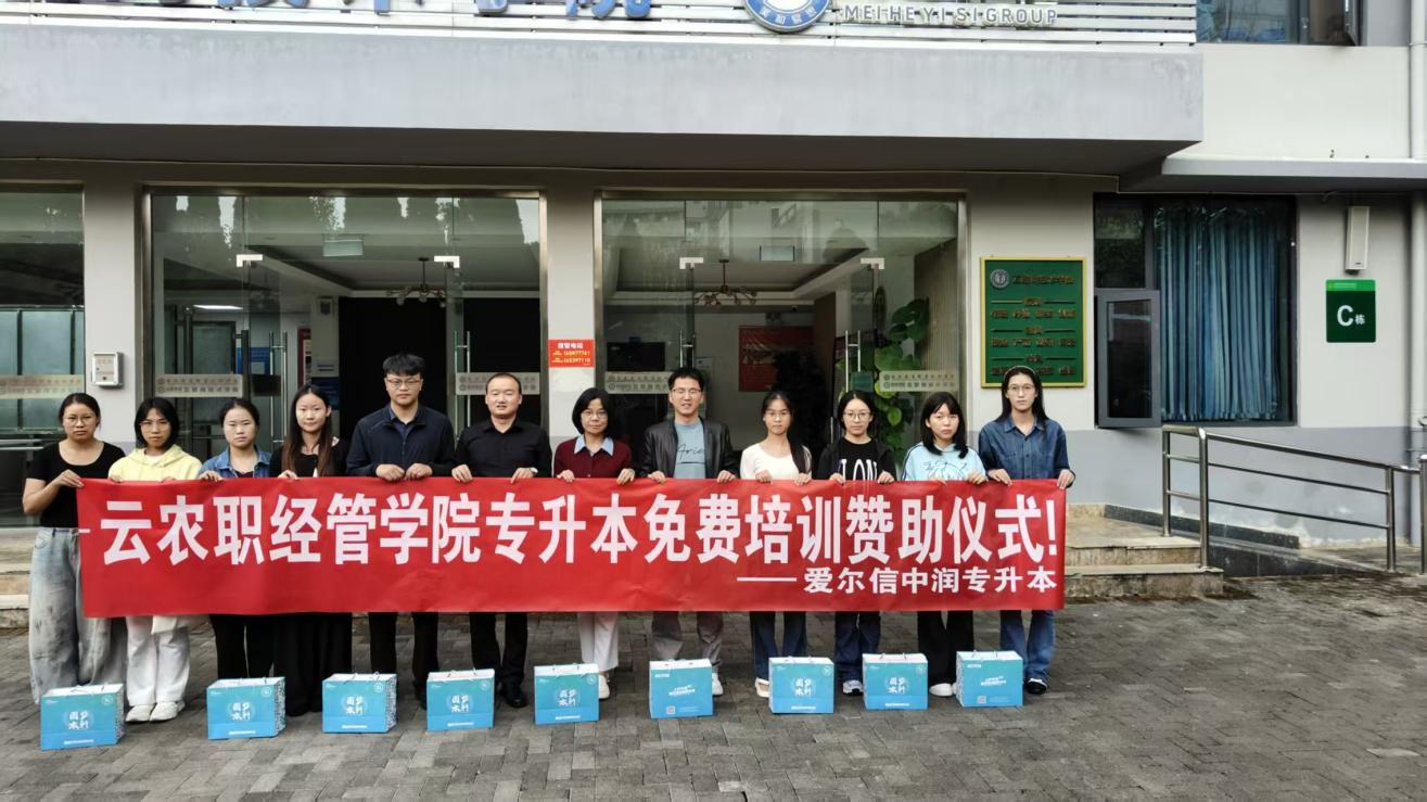 产教融合2025年10月21日,云南农业职业技术学院经济管理学院与爱尔信中润专升本合作举办的“专升本免费培训赞助仪式”在爱尔信培训基地顺利举行。此次活动是学院深入贯彻落实《中华人民共和国职业教育法》和《关于推动现代职业教育高质量发展的意见》精神,深化产教融合、校企合作,拓宽学生成长成才通道的一项重要举措。