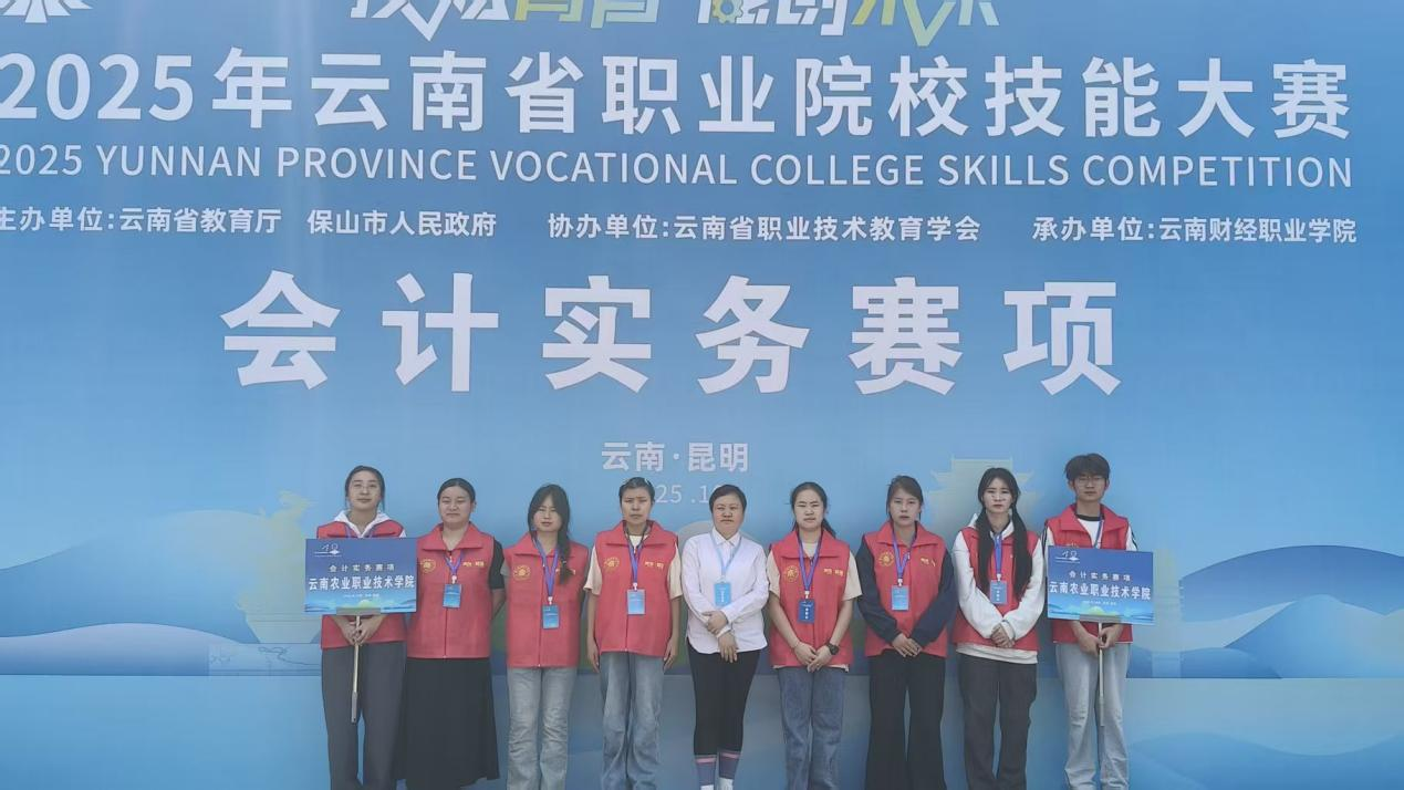 教研活动2025年10月14日,由云南省教育厅和保山市人民政府联合主办、云南省职业技术教育学会协办、云南财经职业学院承办的云南省职业院校技能大赛(高职组)会计实务赛项在云南财经职业学院开赛。经济管理学院代表云南农业职业技术学院参加了本次赛项,与来自全省的38支队伍同台竞技。