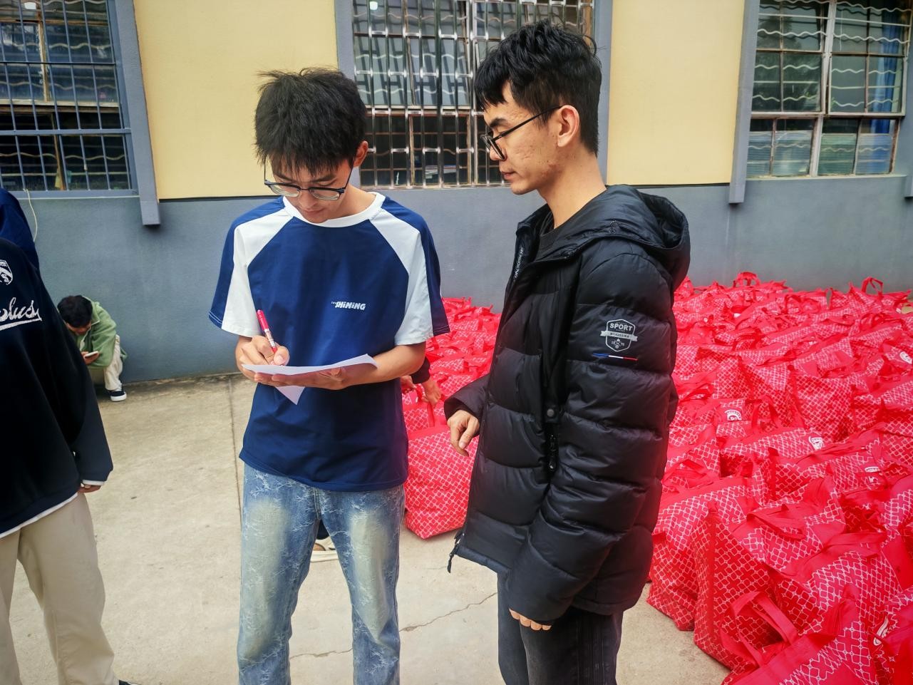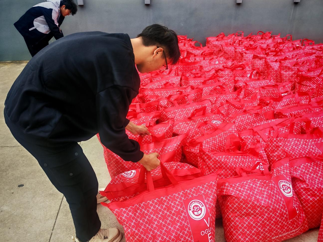 活动当日,学生会成员率先投入筹备工作,大家分工协作,将满载暖意的御寒毛毯从运输车辆上有序卸下、整齐码放,现场忙碌而有序,充分展现出学生骨干的责任与热忱。