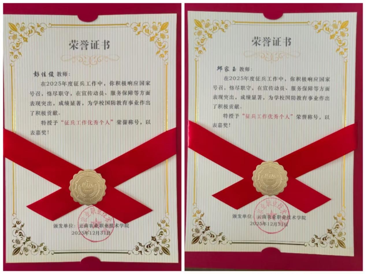 在个人表彰环节,我院彭佳俊老师和邱家玉老师因在征兵一线工作中的辛勤付出与突出贡献,被授予“征兵工作优秀个人”荣誉称号。两位老师扎根一线,精准服务,为学院征兵工作的顺利推进和高标准完成提供了坚实保障。