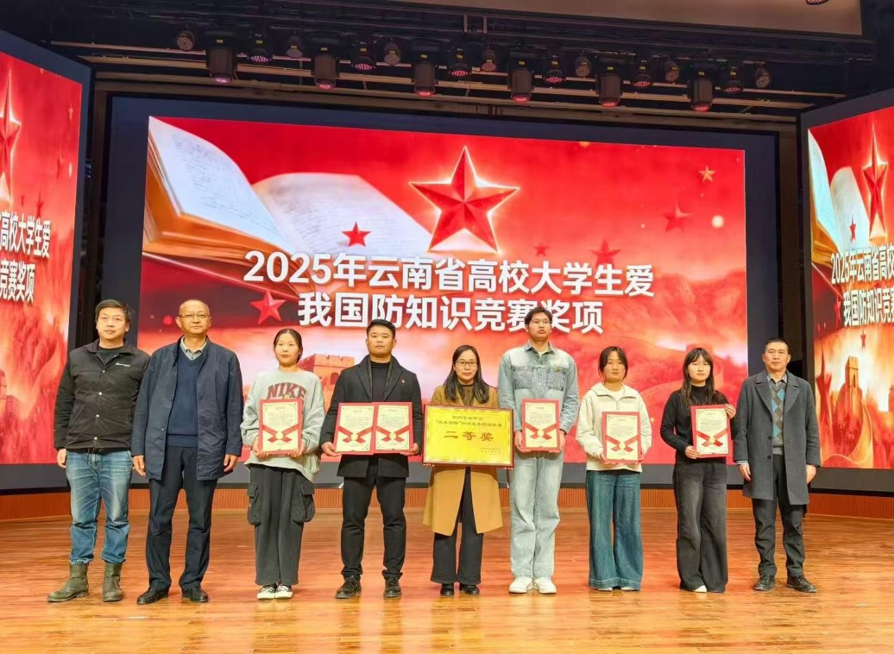 尤为可喜的是,我院2024级行政管理二班胡宗剑同学在11月26日举办的云南省“爱我国防”大学生知识竞赛中沉着应战、发挥出色,荣获省级二等奖,并在本次大会上获得公开表彰。其指导教师张丽萍老师因全程悉心指导,被授予“优秀指导老师”荣誉称号。这一成绩的取得,既体现了学生个人的勤奋努力,也反映了学院注重学生综合素质培养、扎实推进国防教育的成效。