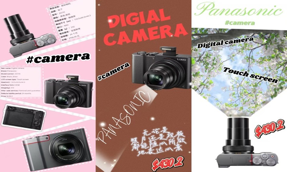 比赛围绕草莓、胸针、蛋黄酥、数码相机等产品开展宣传图创作,选手们运用比赛PS、醒图等工具自主设计,突出产品卖点与小红书平台特色,共收到参赛作品116份。优秀作品构图新颖、色彩协调、电商实用性强,充分展现学子扎实的设计功底与创意能力。