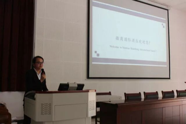 紧接着是云南徽商国际酒店,它是按五星级标准建设装修,集客房、餐饮、会议、娱乐及商业于一体的综合型酒店。徽商国际负责人苏红为同学们介绍了公司以儒家文化的理念来经营公司,酒店秉承着“至善,至诚,至情”的服务理念,深刻体现了徽文化的深厚底蕴。并欢迎同学们能够加入徽商国际酒店。