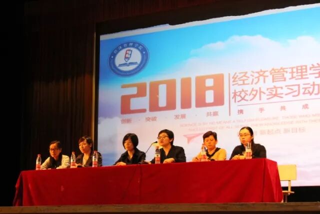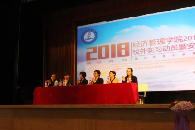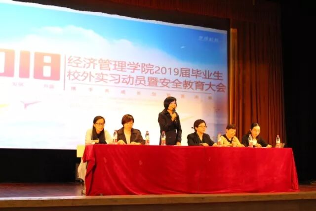 为了贯彻落实“2+1”人才培养模式,加强学生校外实习的安全管理。经济管理学院于2018年6月1日中午12:30在礼堂召开了19届毕业生校外实习动员暨安全教育大会。此次出席会议的有经济管理学院院长梁盈老师、经济管理学院副院长董琳老师、教学办公室主任张丁月老师、行政办公室主任毕競文老师、党总支办公室主任郭正蓉老师、团总支书记张丽萍老师。此次大会由董副院长主持,共有三个环节。
