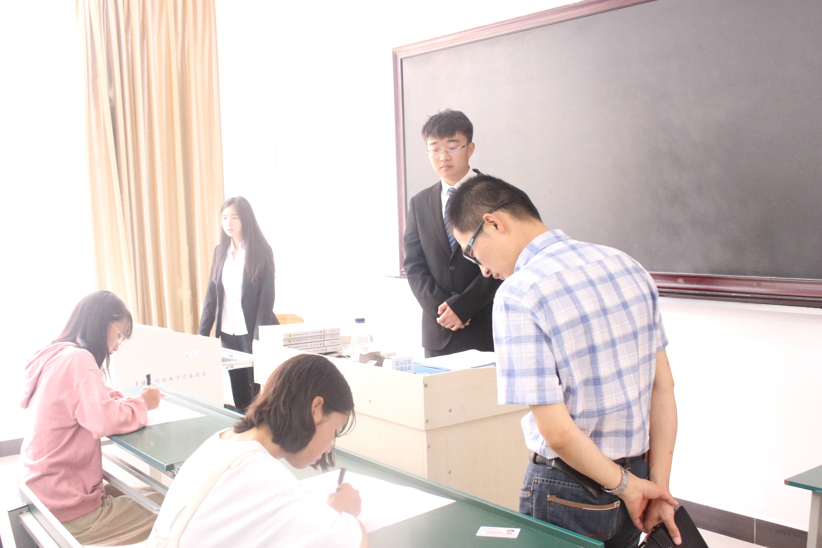 参与此次考试的除了19级和16(3+2)的新生,还有经济管理学院党总支书记谭琳老师、党总支副书记徐浩老师、团总支书记张丽萍老师、辅导员余潇老师以及主席团成员对各个考场进行了巡视,学生会干部以及入党积极分子着正装进行监考,营造了严肃而良好的考场氛围,学生手册考试取得了圆满成功。